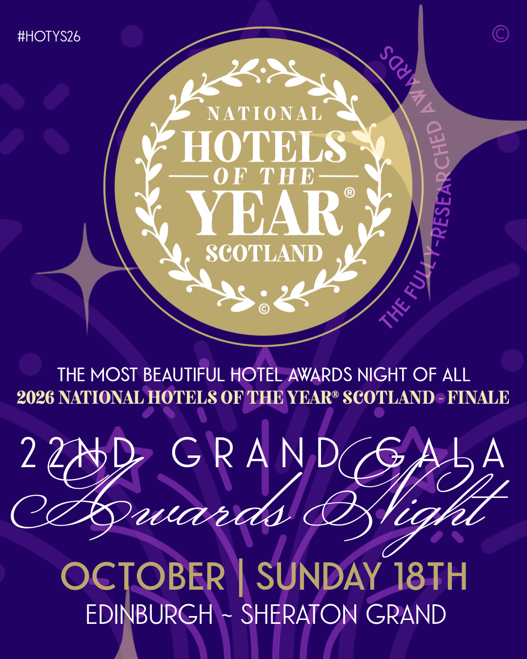 will be in Edinburgh at the Sheraton Grand and it'll be a truly special occasion when the whole process comes to an exciting grand finale climax - with just as much glamour and emotion but a more efficient presentation structure. Event & Category details online here very soon.